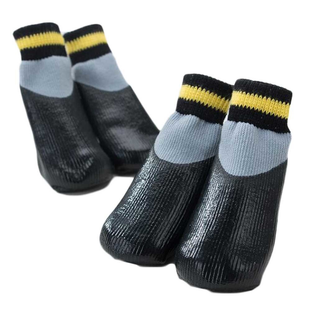 4 Pcs Dog Knitted Socks Pet Socks Dog Waterproof Coated Socks Paw Protective Socks, Black Grey 4#